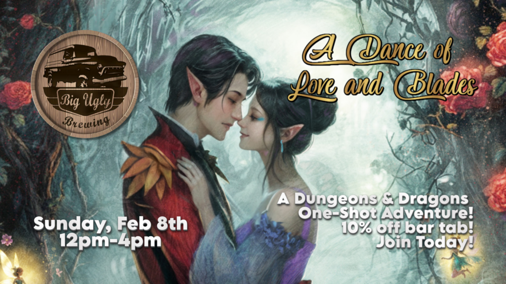 Thanks for your interest in our One-Shot event at Big Ugly Brewing in Chesapeake! Doors open at noon and the game starts at 12:30pm. This game includes:
