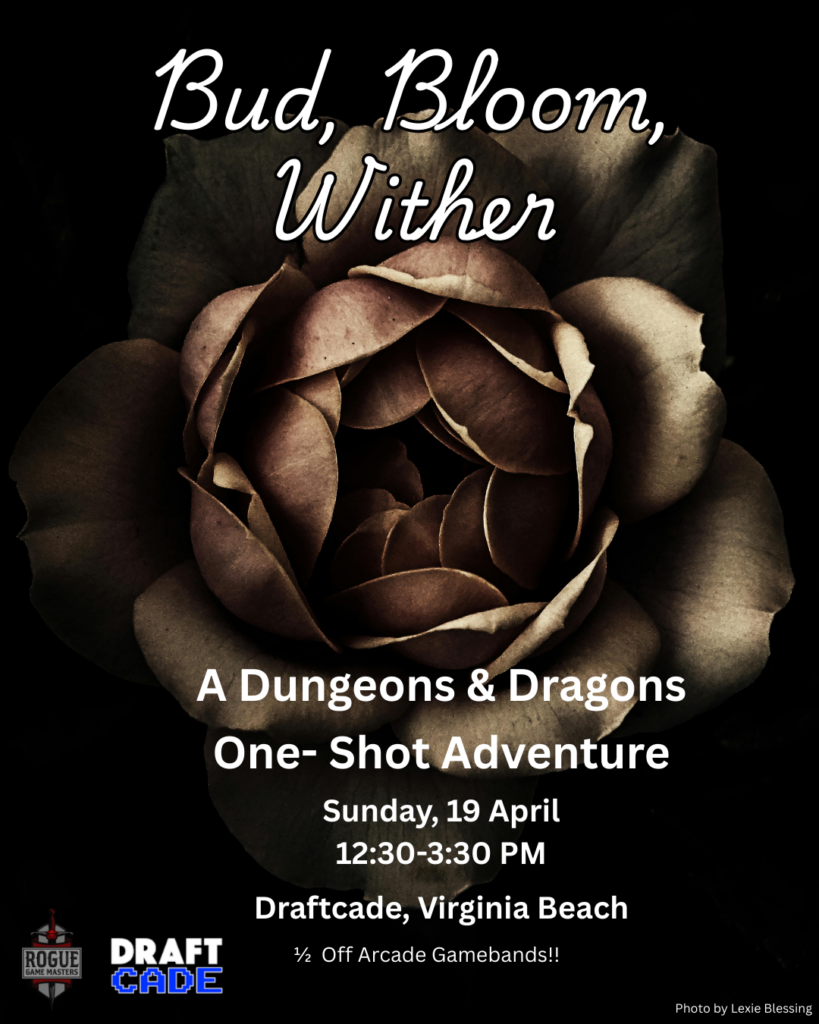 Thanks for your interest in our One-Shot event at DraftCade in Virginia Beach! Doors open at noon and the game starts at 12:30pm. This game includes: