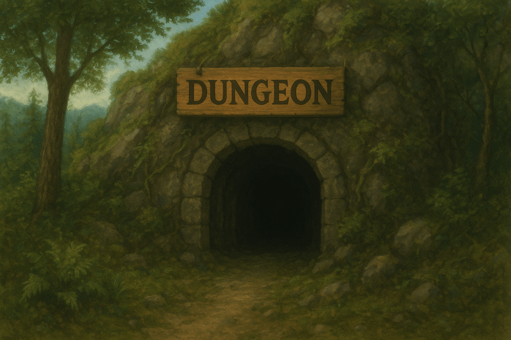 And so the adventures begin their quest, only to find the cavern entrance oh so clearly labeled “DUNGEON” as if somebody was expecting them…