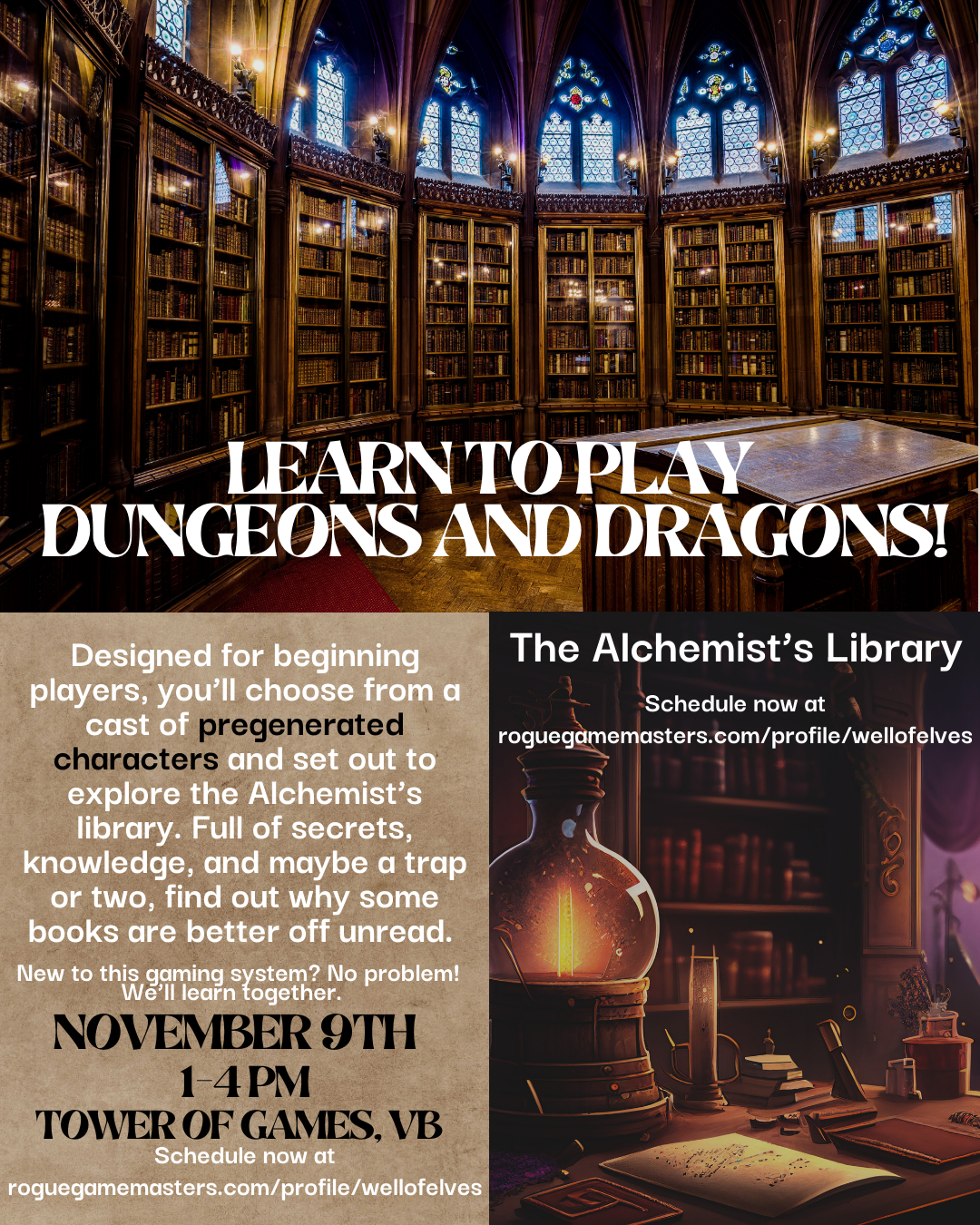 Designed for beginning players, you’ll choose from a cast of pre-generated characters and set out to explore the Alchemist’s library. Full of secrets, knowledge, and maybe a trap or two, find out why some books are better off unread.