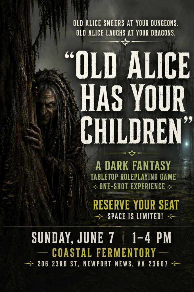 “Old Alice Has Your Children” is a dark fantasy game with mature themes for players who enjoy immersive storytelling, meaningful choices, and real stakes where clever thinking is paramount. Players can expect to walk away with a story which lingers, as well as the in-game consequences of the choices made.