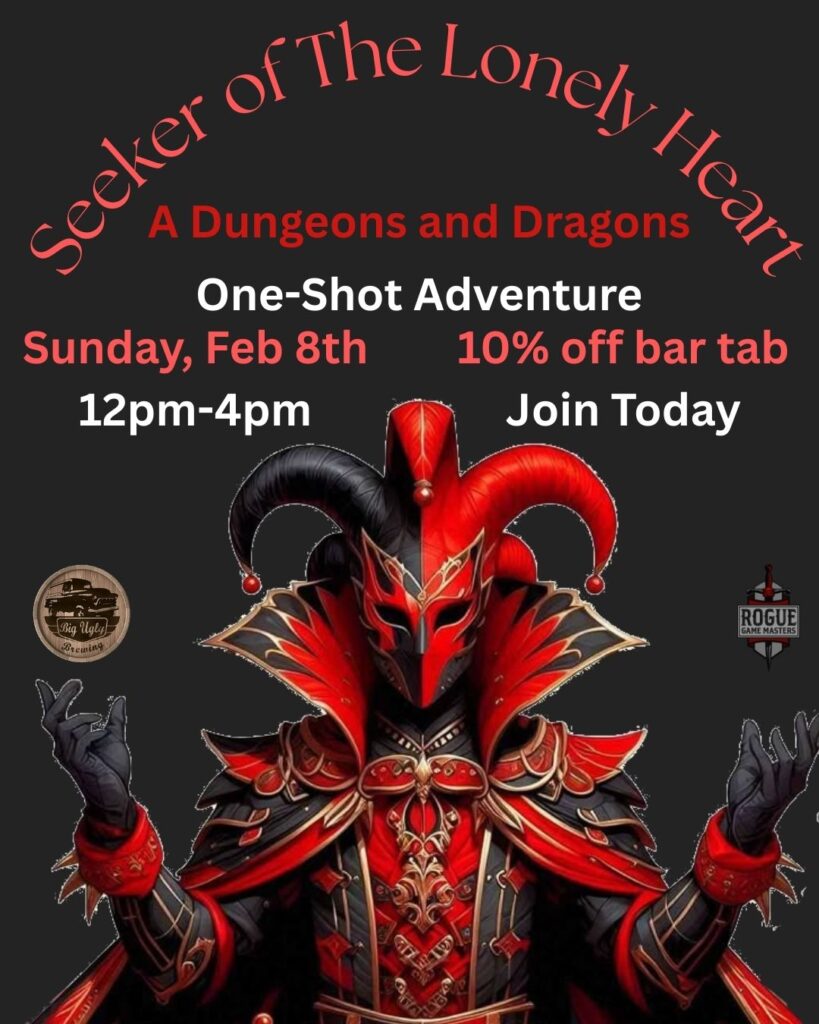 Thanks for your interest in our One-Shot event at Big Ugly Brewing in Chesapeake! Doors open at noon, and the game starts at 12:30pm. This game includes: