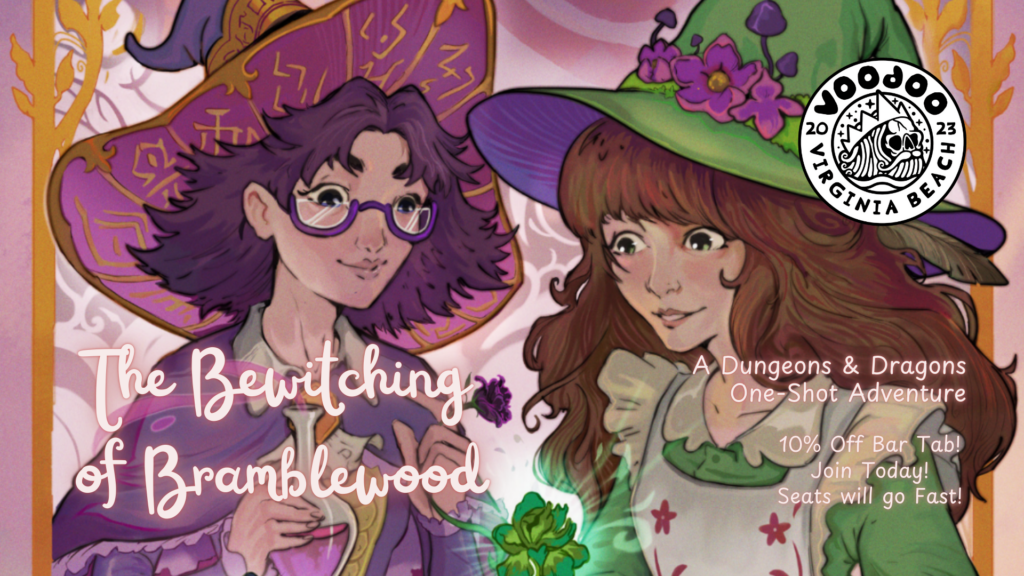 Thanks for your interest in our One-Shot event at Voodoo Brewing in Virginia Beach! Doors open at noon and the game starts at 12:30pm. This game includes: