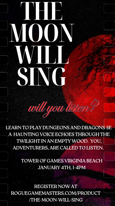 This is a great opportunity to practice combat encounters in  DND, or try out new classes that you haven’t explored before.Rogue Game Masters does not provide refunds or transfers to another DM due to cancellations. Substitutions may be made on a case-by-case basis, up to GM discretion. If you are unable to attend a game, please let your GM know at least 24 hours in advance.